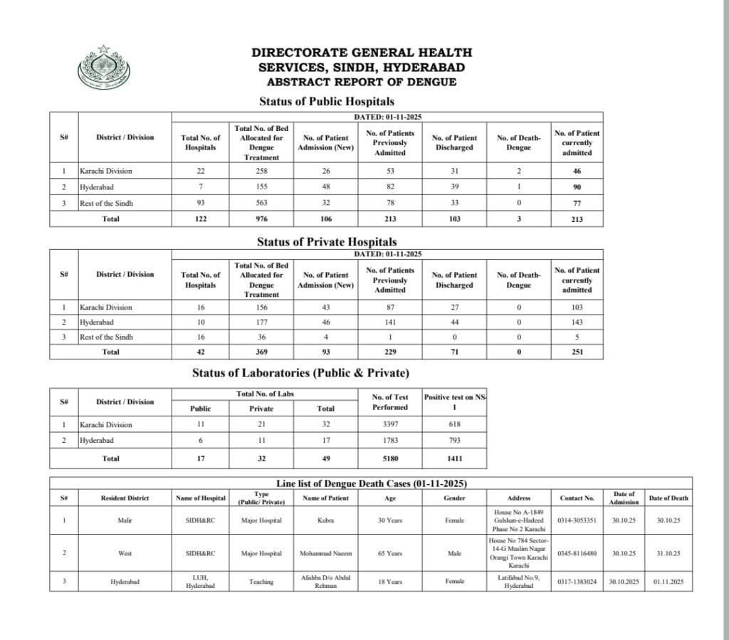 سندھ میں ڈینگی بےقابو، گزشتہ 24 گھنٹوں میں مزید تین افراد انتقال کر گئے