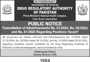 چند روز قبل ڈرگ ریگولیٹری اتھارٹی آف پاکستان نے بغیر کسی واضح وجہ کے بھرتیوں کا تقریباً مکمل عمل اچانک